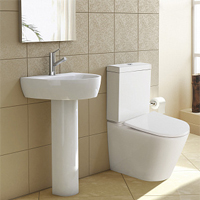 (Укороченный, с горизонтальным выпуском, фаянсовый, антивсплеск)