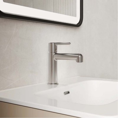 (Длина излива 182 мм., матовый, корпус латунь, керамический картридж, подвод воды на 1/2")