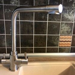 (Длина излива 150 мм., поворотный излив, из латуни, керамический картридж, подводка 1/2")