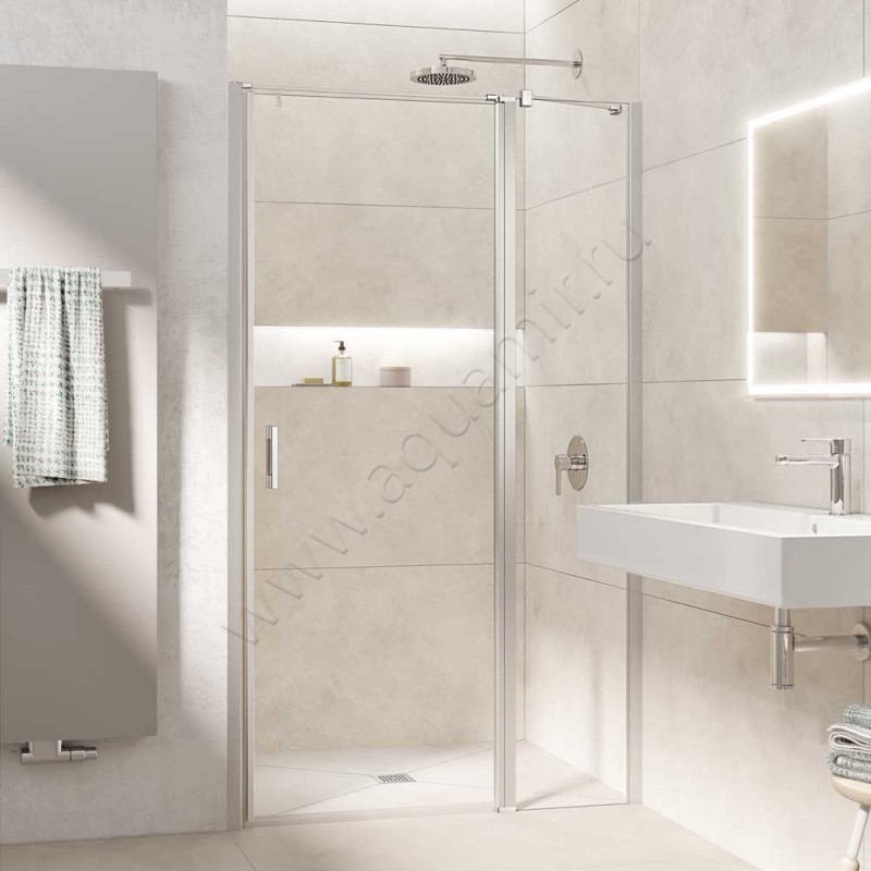 Маятниковая душевая дверь в нишу с фиксированным элементом Kermi Liga в серебристом цвете (LI1GR123181AK)