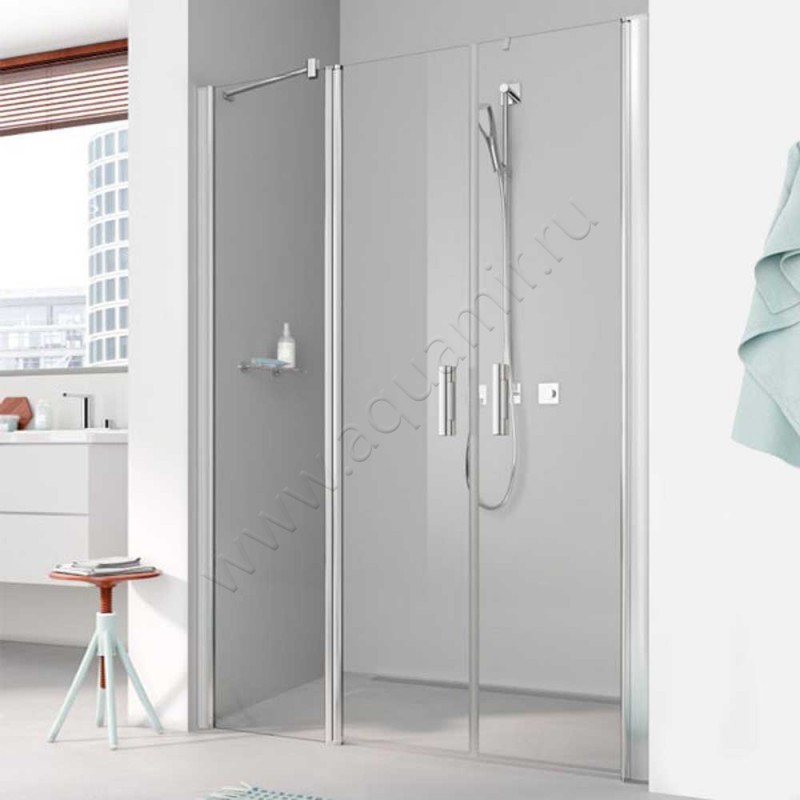 Маятниковая душевая дверь в нишу с фиксированным элементом Kermi Pega в серебристом цвете (PEPFL15318VAK)