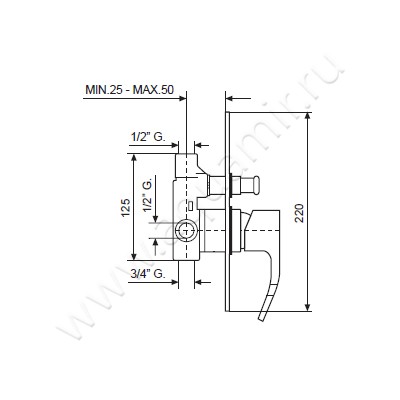 Встраиваемый смеситель для ванны Emmevi Niagara хром, артикул товара CR 74019, страна производства Италия.
