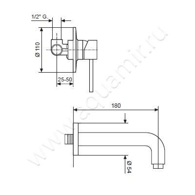 Встраиваемый смеситель для раковины Emmevi Piper хром (CR 45055)