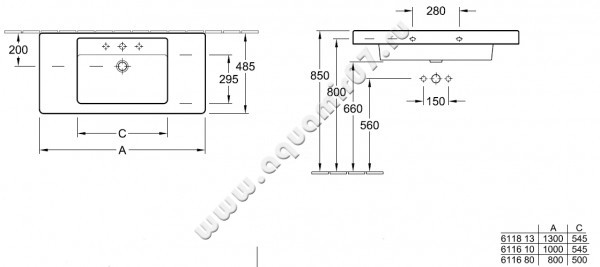 Раковина мебельная накладная Villeroy & Boch Architectura 80 см, фарфор, белый глянец/white alpin (61168001)
