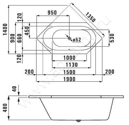 Ванна акриловая Laufen Solutions 190x90, артикул товара H2255200000001, страна производства Швейцария.