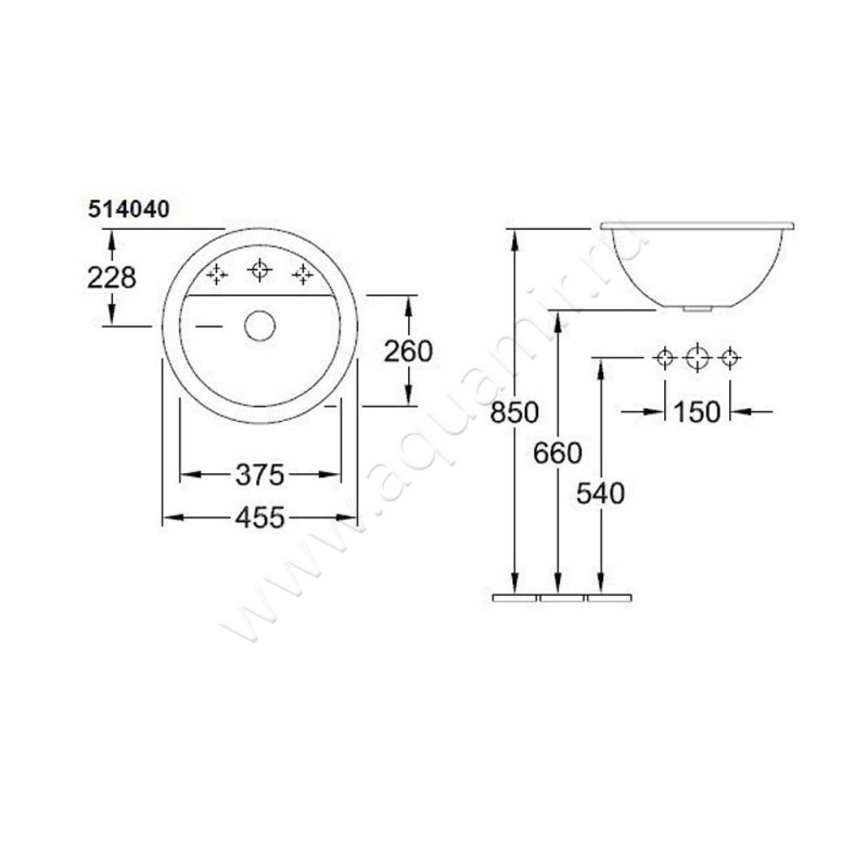Раковина встраиваемая сверху на столешницу Villeroy & Boch Loop & Friends 45,5 см, фарфор, белый глянец/white alpin (51404001)