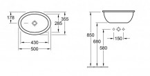Раковина встраиваемая сверху на столешницу без отверстий Villeroy & Boch Loop & Friends 50 см, фарфор, белый глянец/white alpin (61551001)