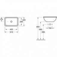 Раковина встраиваемая сверху на столешницу без отверстий Villeroy & Boch Loop & Friends 51 см, фарфор, белый глянец/white alpin (61451001)