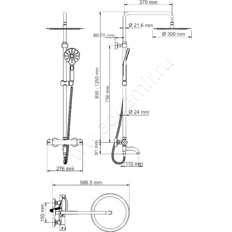 | Диаметр верхнего душа: | 300мм. |