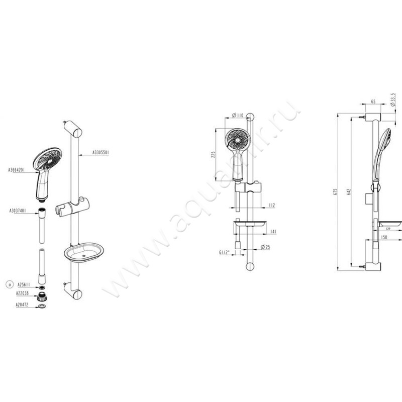 | Оснащение: | Душевой шланг, Держатель для душа, Душевая штанга |