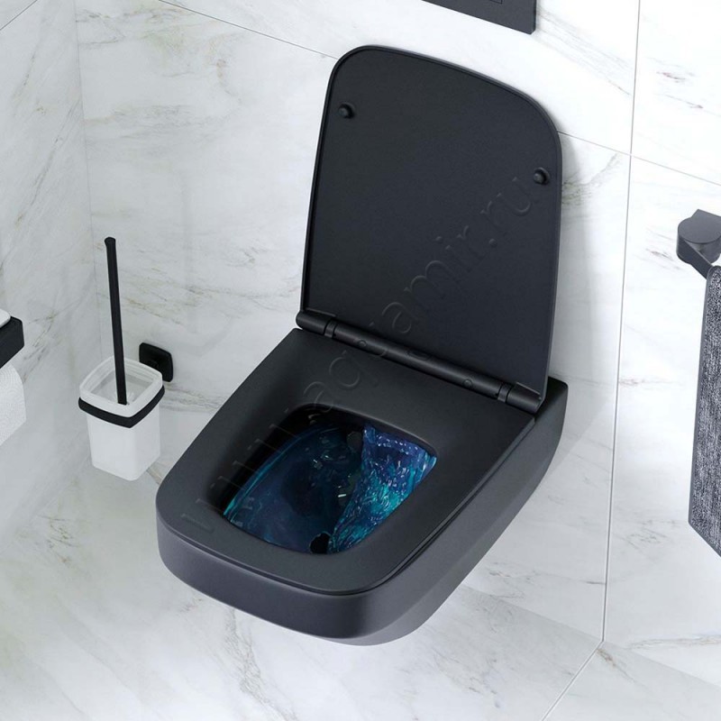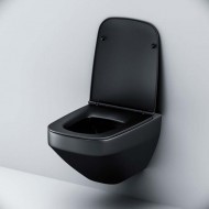 Унитаз подвесной AM.PM INSPIRE V2.0 с крышкой микролифт, 55 см, безободковый, черный, артикул товара C50A1700MBSC, страна производства Германия.