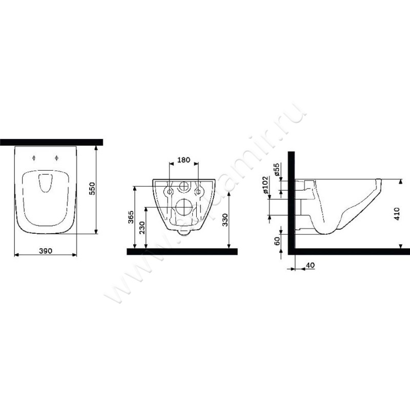 - Модель унитаза предназначена для подвешивания на стену при помощи системы инсталляции