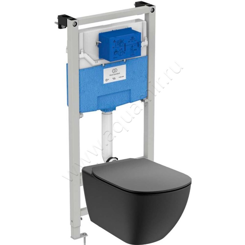 Комплект унитаза с инсталляцией Ideal Standard TESI с крышкой, 53 см, черный, артикул товара T3868V3, страна производства Германия.