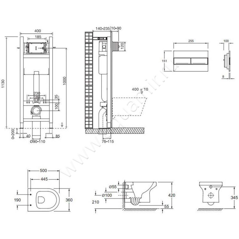 - Модель унитаза предназначена для подвешивания на стену при помощи системы инсталляции