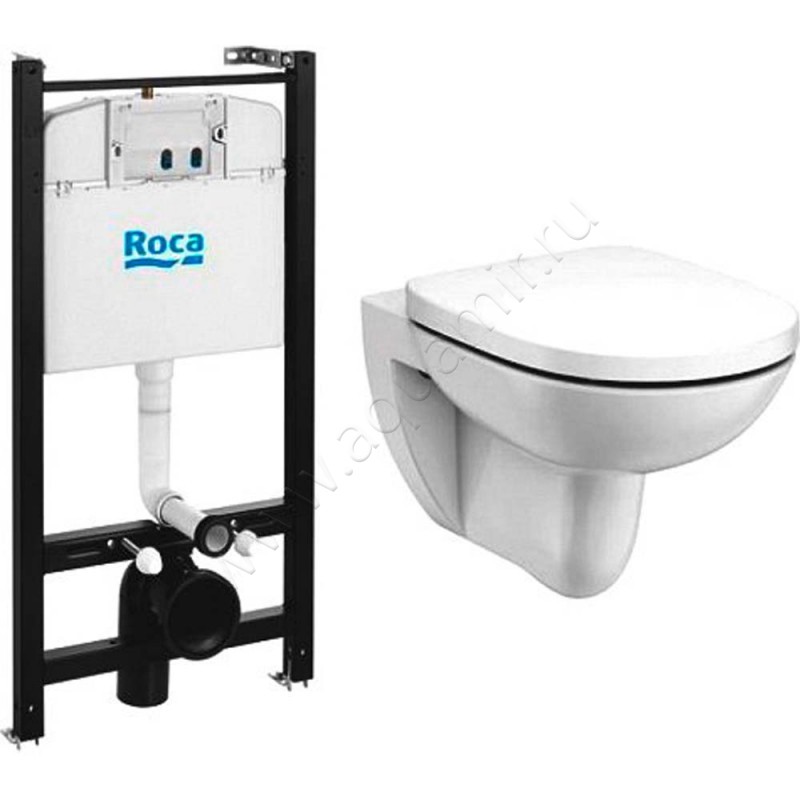 Комплект унитаза с инсталляцией Roca DEBBA с крышкой микролифт, 54 см, безободковый, белый, артикул товара 893104980, страна производства Испания.