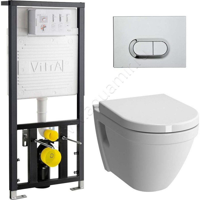 Комплект унитаза с инсталляцией Vitra S50 с крышкой микролифт, 52 см, безободковый, белый, артикул товара 9003B0037201, страна производства Турция.