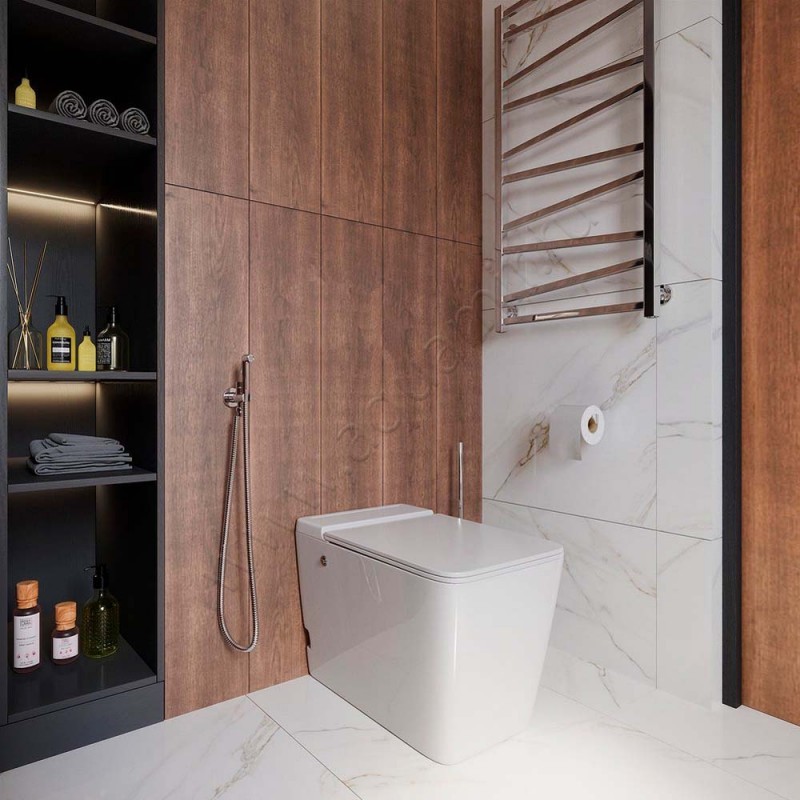 - Модель унитаза предназначена для установки на пол, чаще всего с застенным модулем (внутристенным бачком)