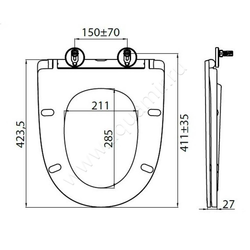 - Не предназначен для использования в комплексе с крышкой-биде