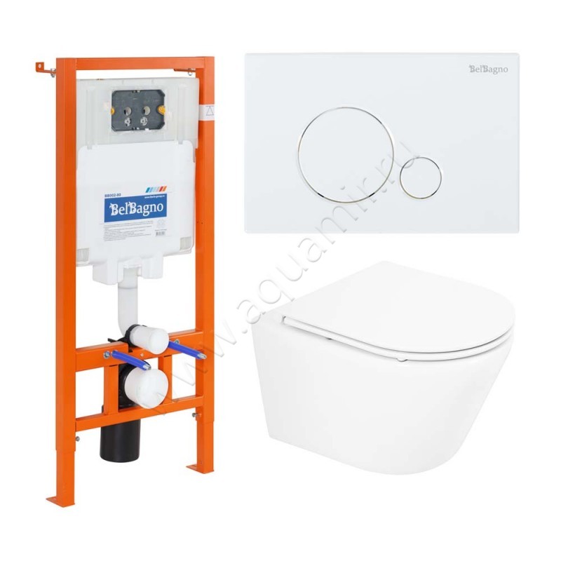 Комплект унитаза с инсталляцией BelBagno TRE с крышкой микролифт, 50 см, белый, артикул товара BB8001CHR/SC + BB002-80 + BB014-SR-BIANCO, страна производства Италия.