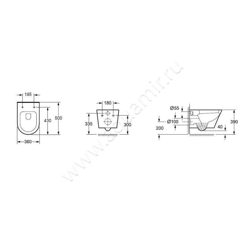 - Модель унитаза предназначена для подвешивания на стену при помощи системы инсталляции