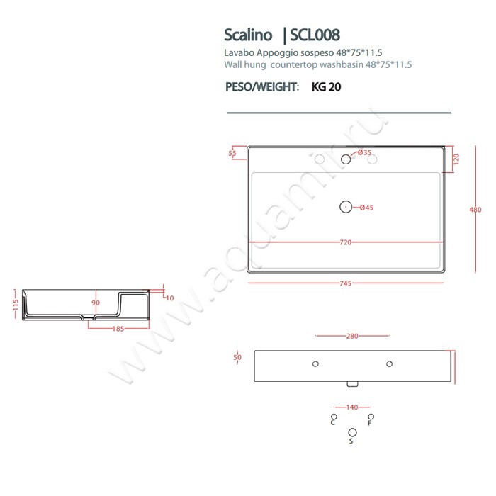 Раковина-чаша накладная с отверстием под смеситель ArtCeram SCALINO Bianco Lucido (SCL008 01 00)