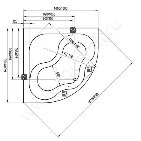 - Гидромассажная опция приобретается отдельно