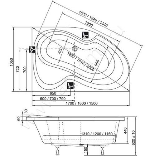 - Предусмотрена установка смесителя на борт ванны