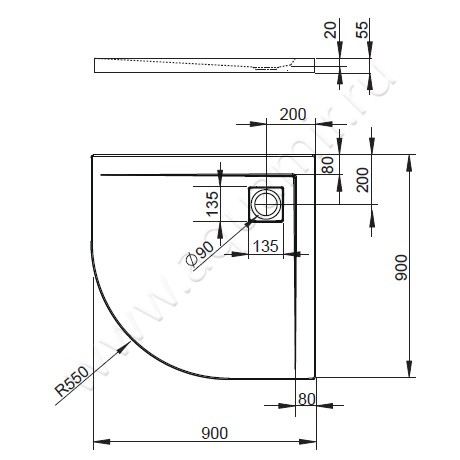 Размеры (д.ш.в.) - 90x90x5,5 см.