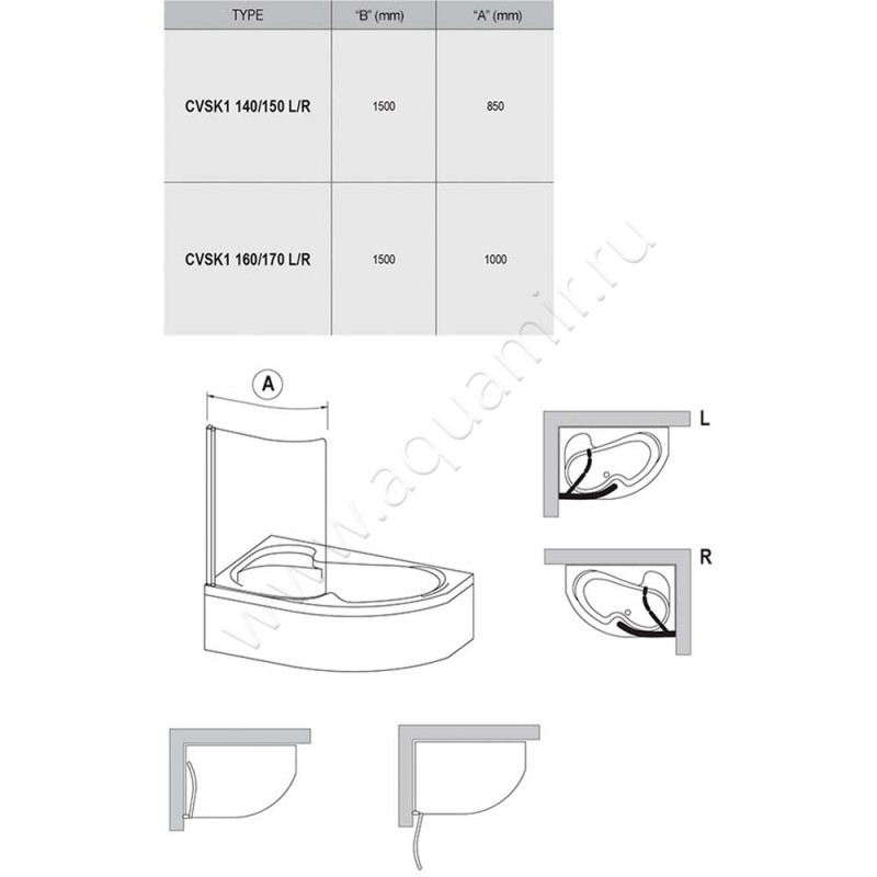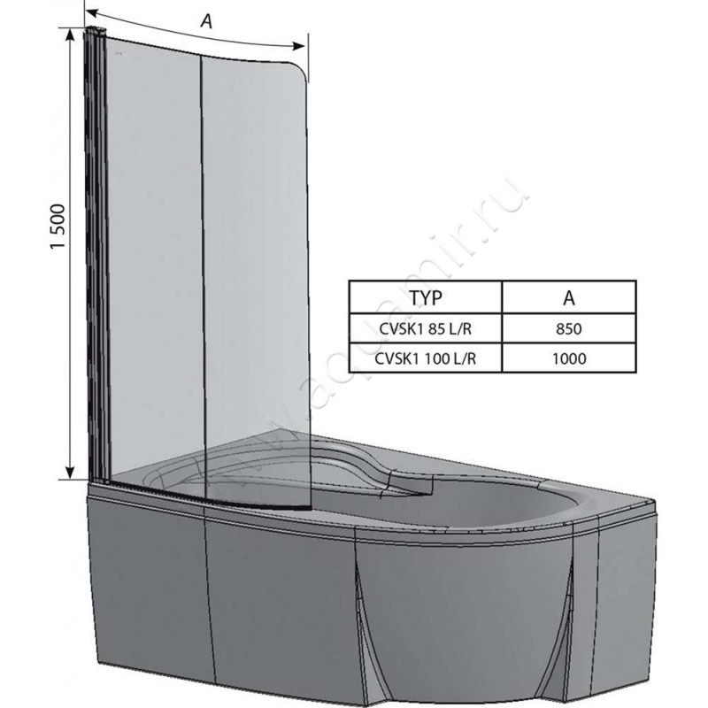 Шторка на ванну Ravak Rosa CVSK1 ROSA 160/170 (7QLS0C00Y1)