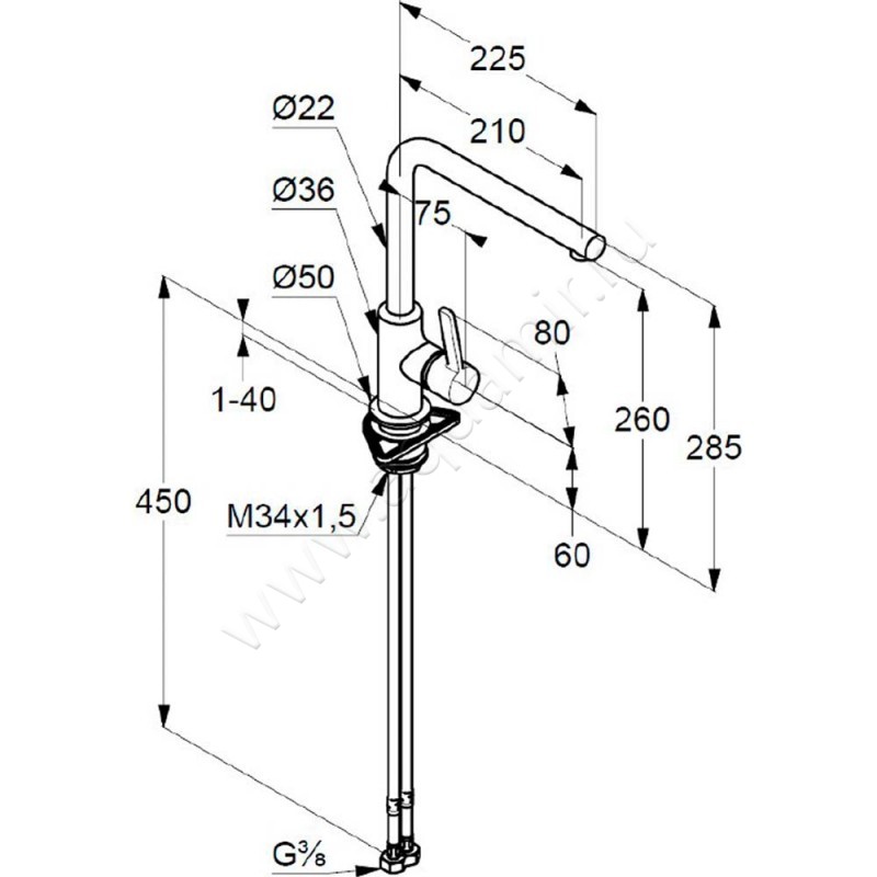 - Механизм управления - керамический картридж