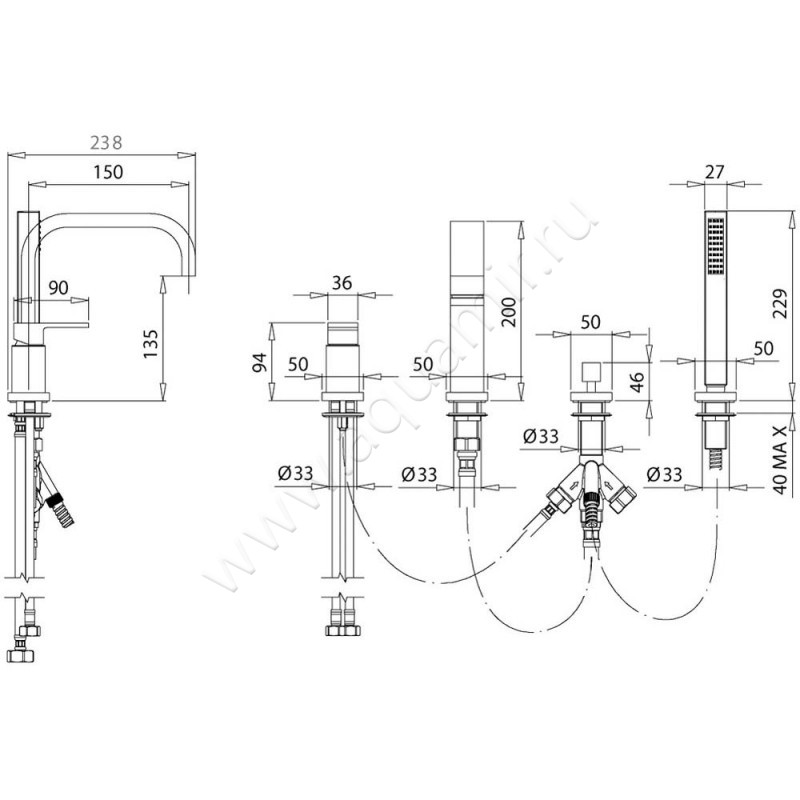 Смеситель на борт ванны Migliore Kvant Gold (25392)