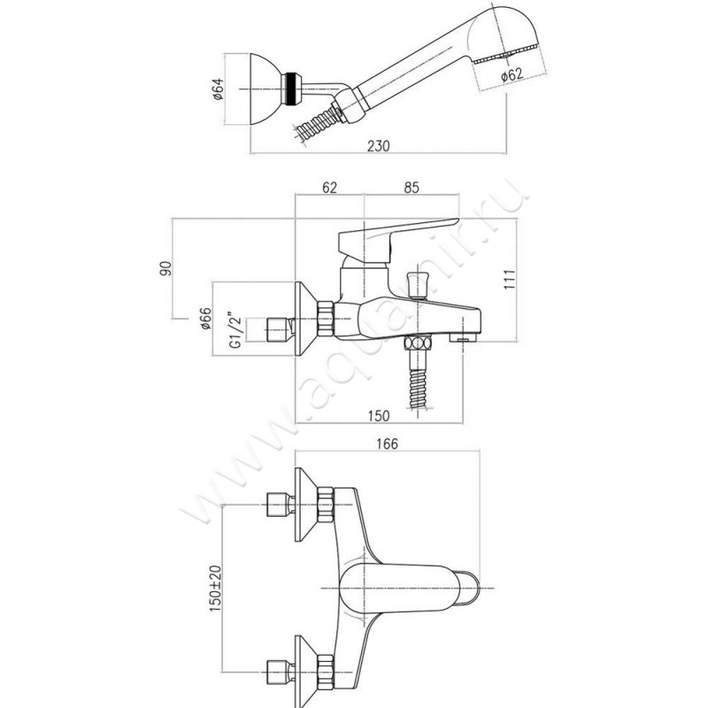 Смеситель для ванны Webert Sax Evolution с душем, черный матовый (SE850101560)