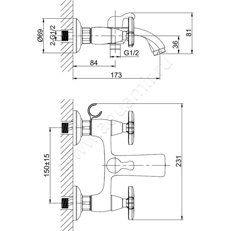 Смеситель для ванны D&K Hessen Goethe с душем, хром (DA1383241)