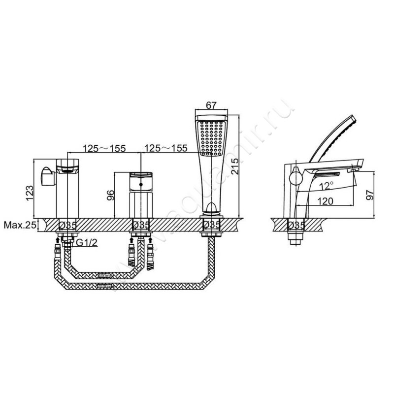 Смеситель на борт ванны D&K Berlin Freie с душем, хром (DA1434901)