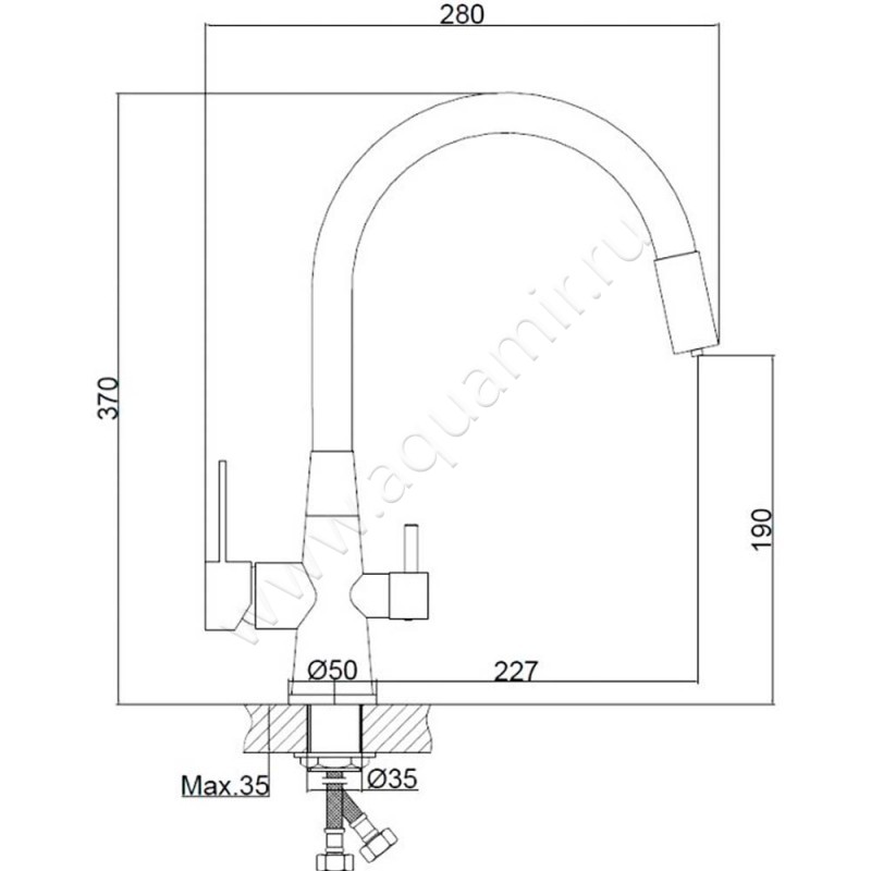 | Длина излива: | 227мм. |