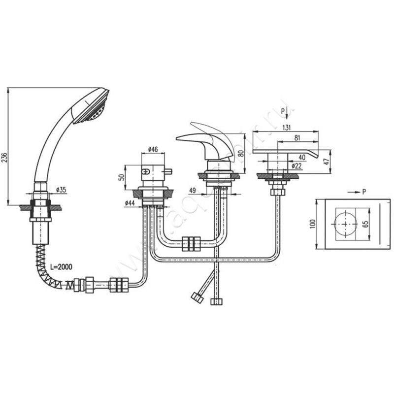 Смеситель на борт ванны Rav Slezak Dunaj с душем, золото (D4735PZ)