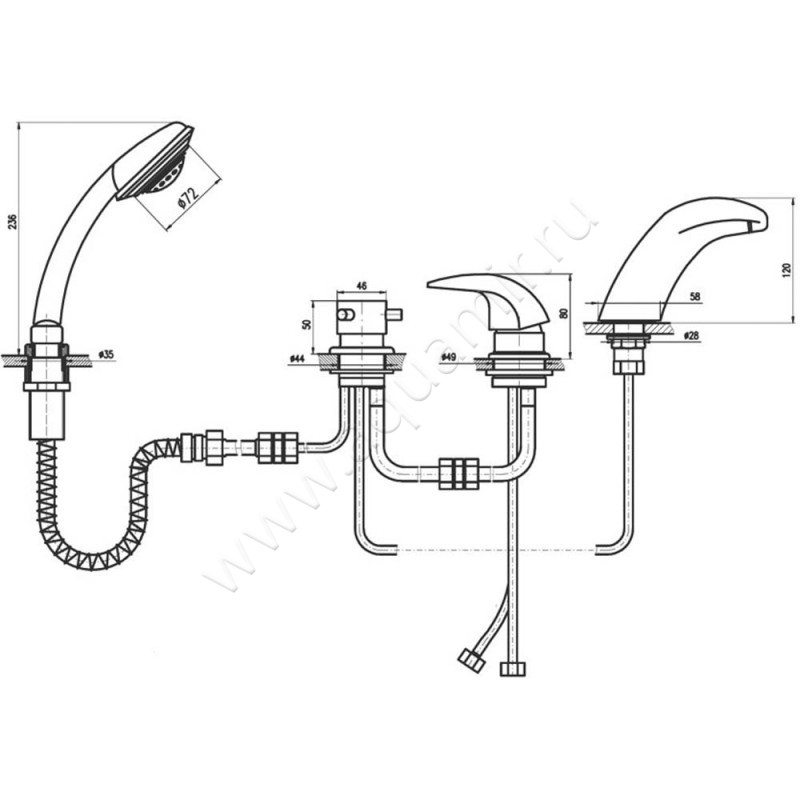 Смеситель на борт ванны Rav Slezak Dunaj с душем, золото (D4715PZ)