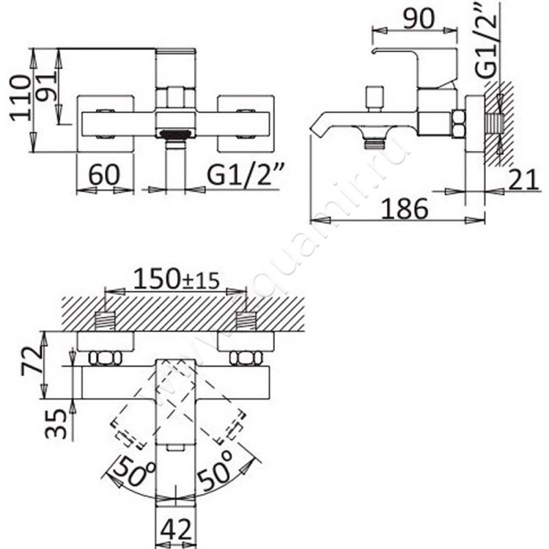 Смеситель для ванны Cezares Porta черный матовый (PORTAVMNOP)