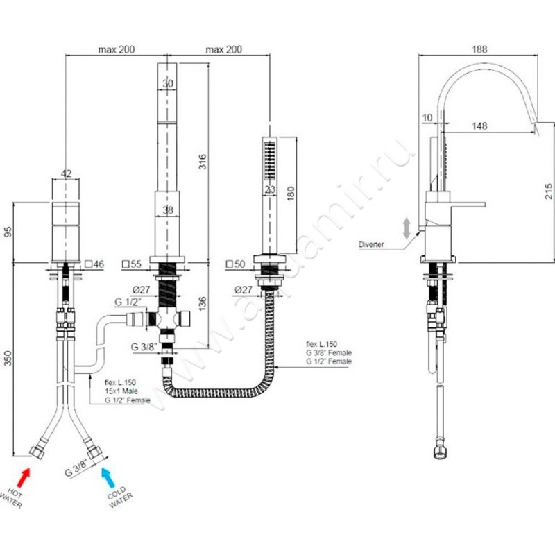 Смеситель на борт ванны Cezares Unika (UNIKABVD30324)