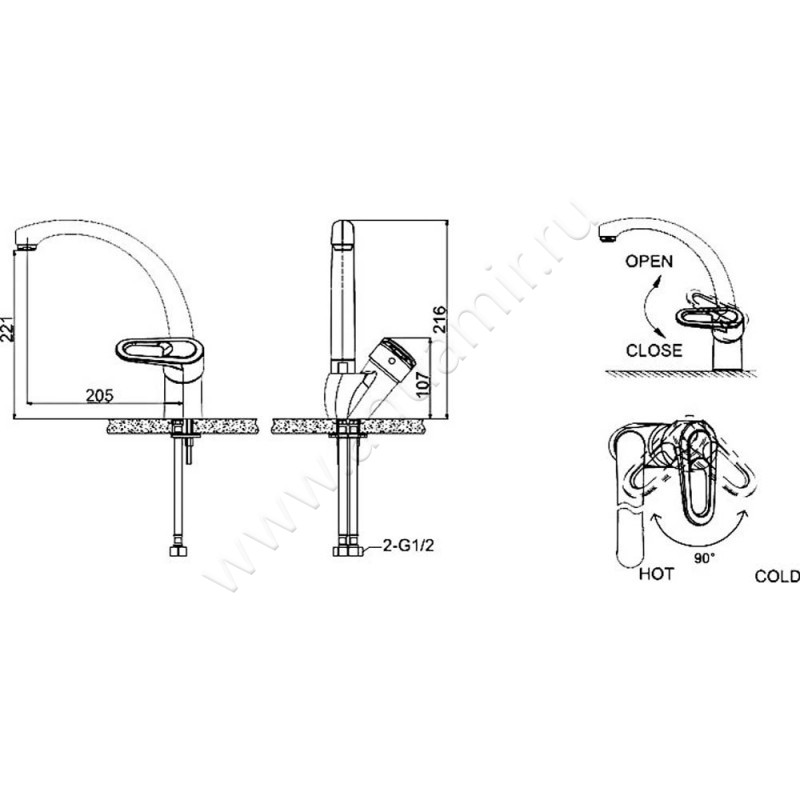 - Механизм управления - керамический картридж