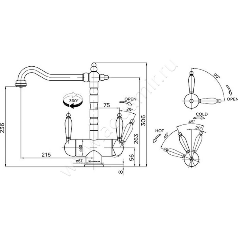 - Механизм управления - керамический картридж