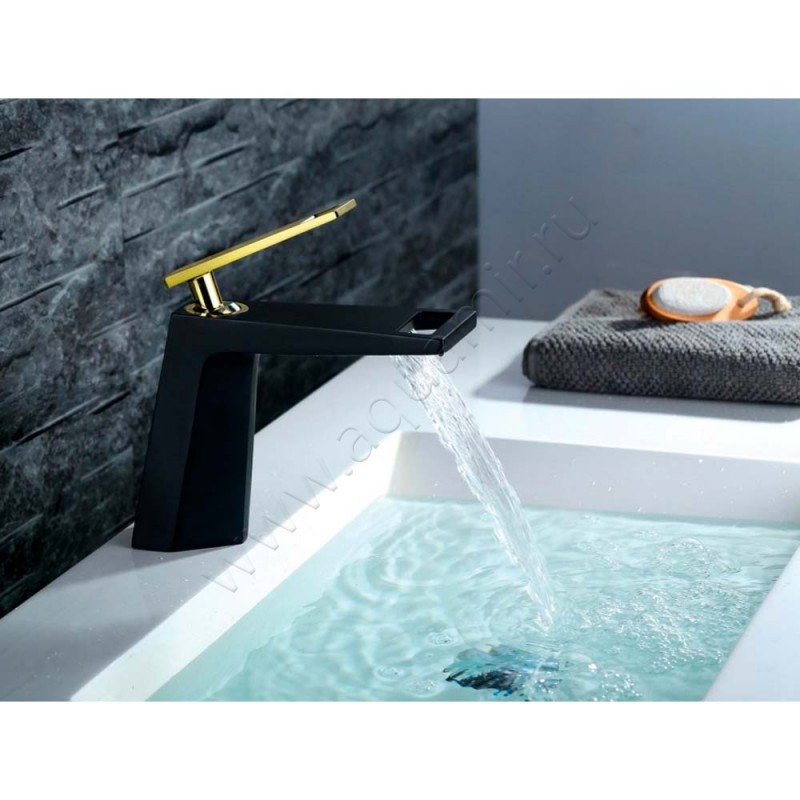 Смеситель для раковины Bronze de Luxe Quadro черный/золото черное матовое/ глянцевое, артикул товара A919B, страна производства Италия.