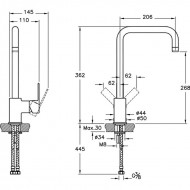 | Длина излива: | 206мм. |