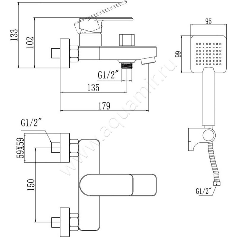 | Комплект поставки: | Ручной душ, Шланг для душа, Настенный держатель |