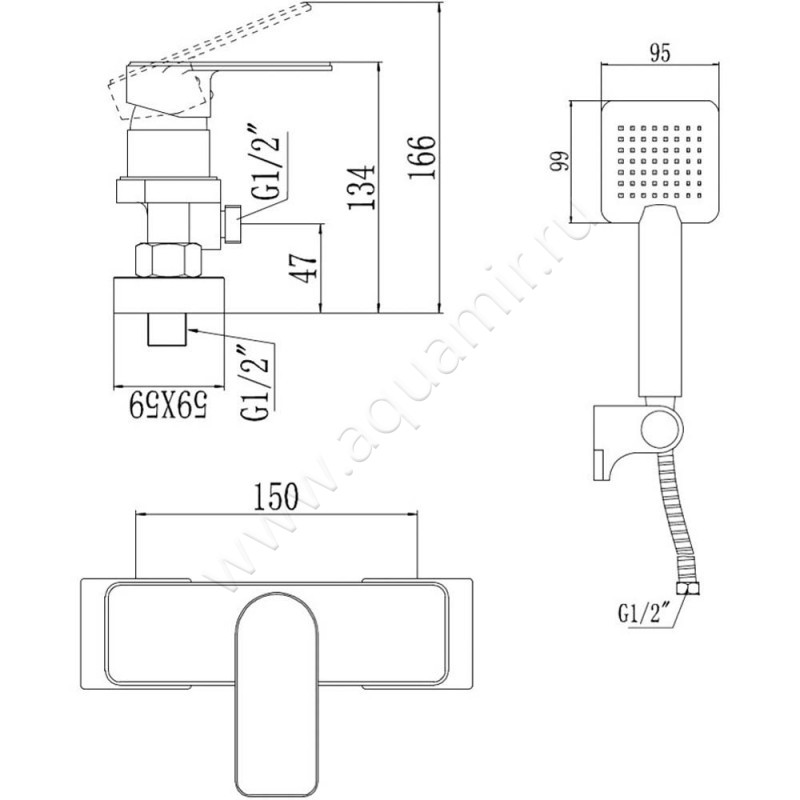 | Комплект поставки: | Настенный держатель, Шланг для душа, Ручной душ |