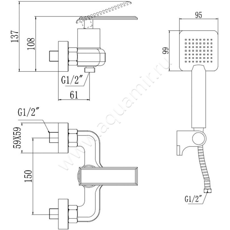 | Комплект поставки: | Настенный держатель, Шланг для душа, Ручной душ |