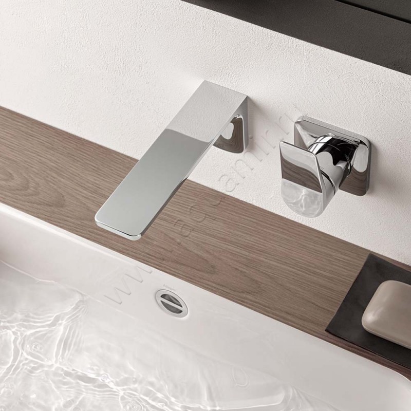 Модель имеет круглую форму с рычажным управлением и предназначена для внутристенного монтажа на два отверстия, материал изготовления сантехническая латунь.