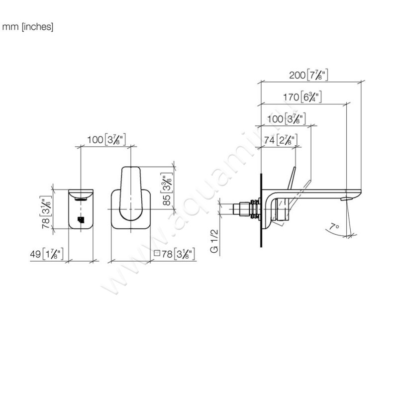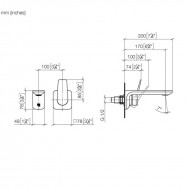 Габаритные размеры: глубина 21,1 см., высота 7 см., излив фиксированный 20,2 см. Механизмом управления смесителя является керамический картридж. Донный клапан поставляется в комплекте.