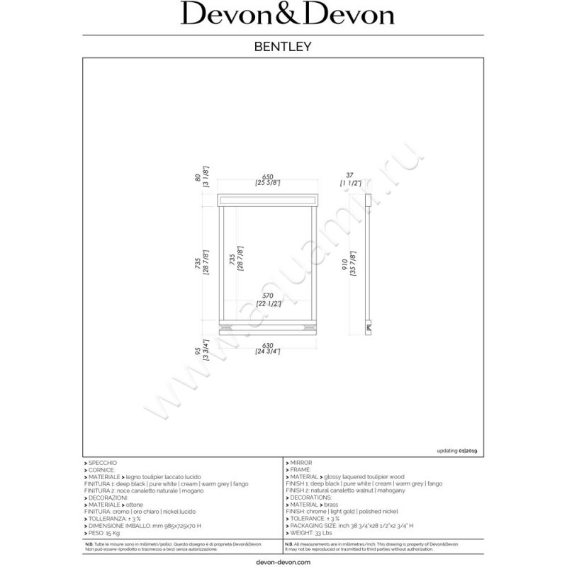 Зеркало Devon & Devon Bentley Warm Grey (DEBENTWGCR)