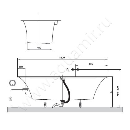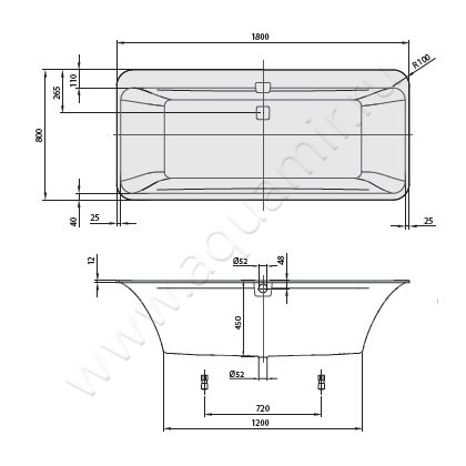 - Предусмотрена установка смесителя на борт ванны